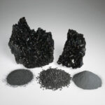 黒色炭化ケイ素(SiC)は、研磨材として最もよく使われるグレードです(α-SiC、SiC含有量98%超、SiO₂/Fe含有量が低い)。ダイヤモンド(モース硬度9.2~9.4、ヌープ硬度2480)に次ぐ最も硬い人工鉱物でありながら、1キログラムあたり数ドルという低価格を実現しています。そのため、安価で迅速な切削が求められ、黒色やわずかな脆さが問題にならない用途で大量に消費されています。主な用途は以下のとおりです。